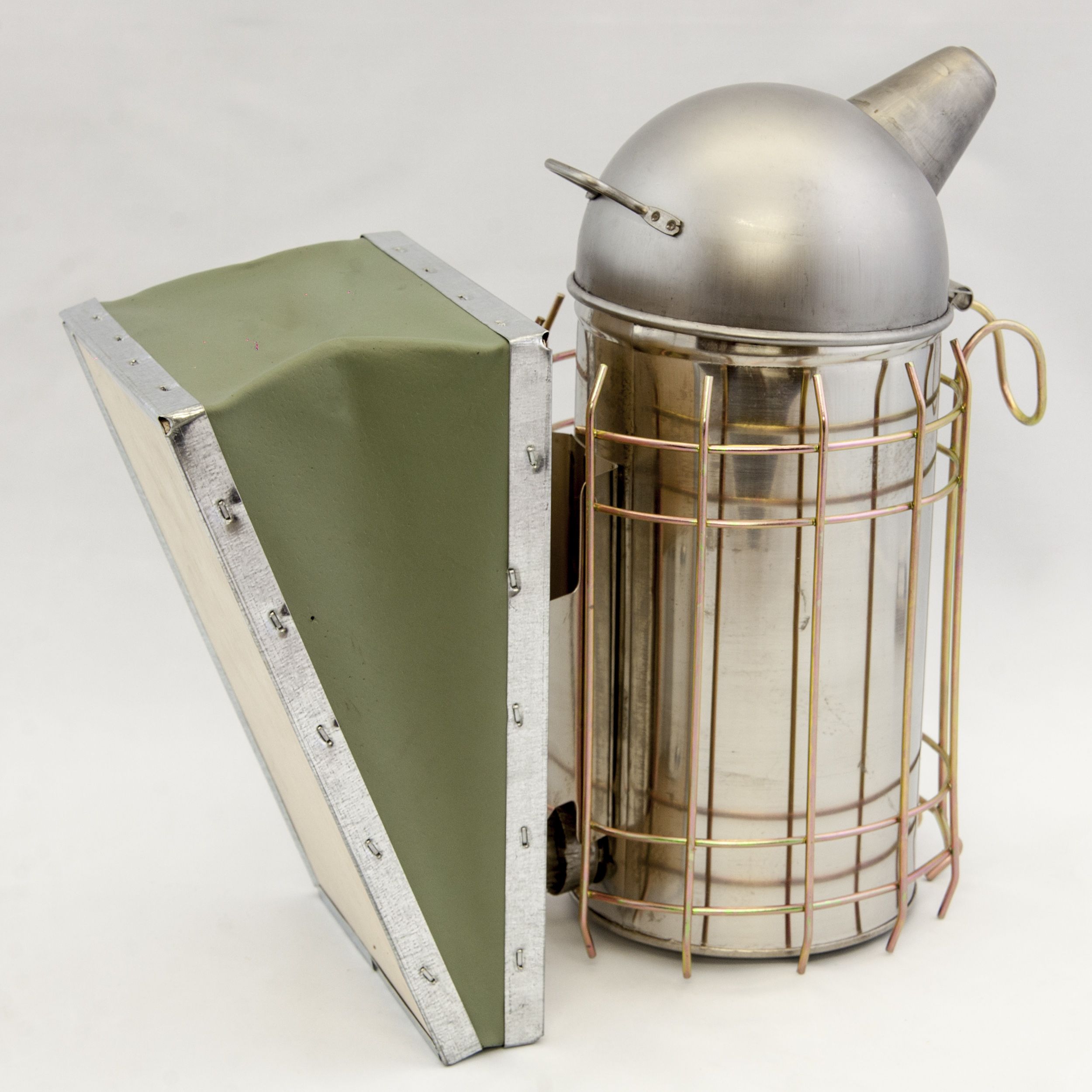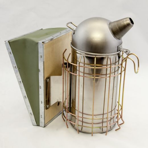 Dýmák nerez Dadant velký SW (shora půlkulatý). Kvalitní nerezové provedení a hlavně s mřížkou proti poškození plastových či lepenkových střech. S háčkem na pověšení do okna apod.