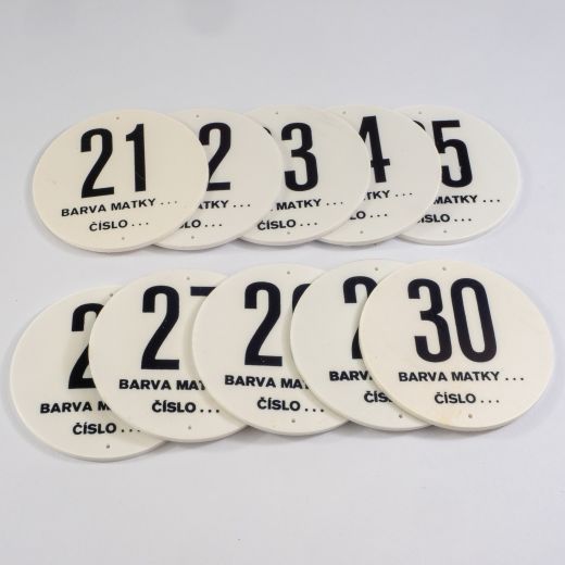 Čísla na označení úlů a matek s obrázkem.
