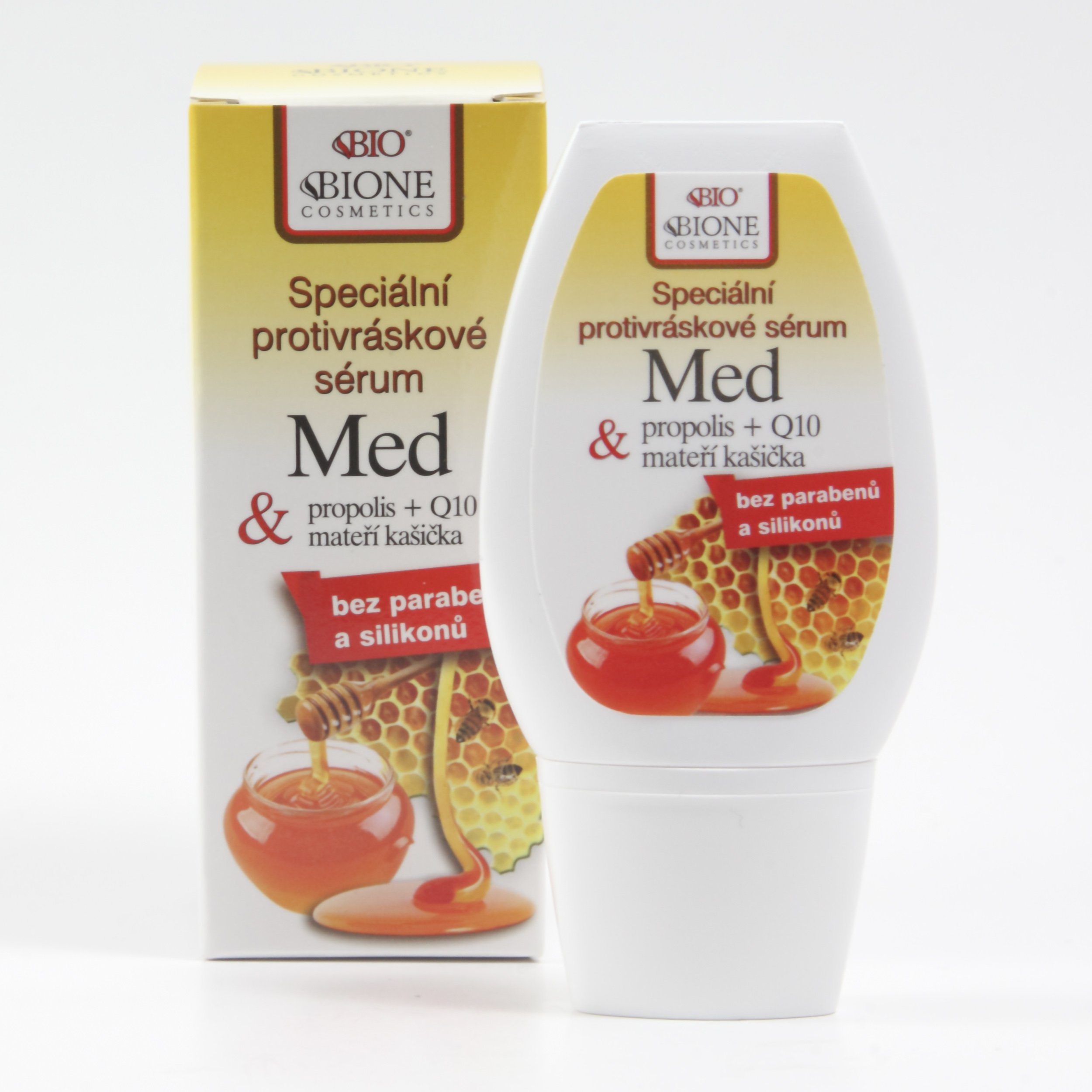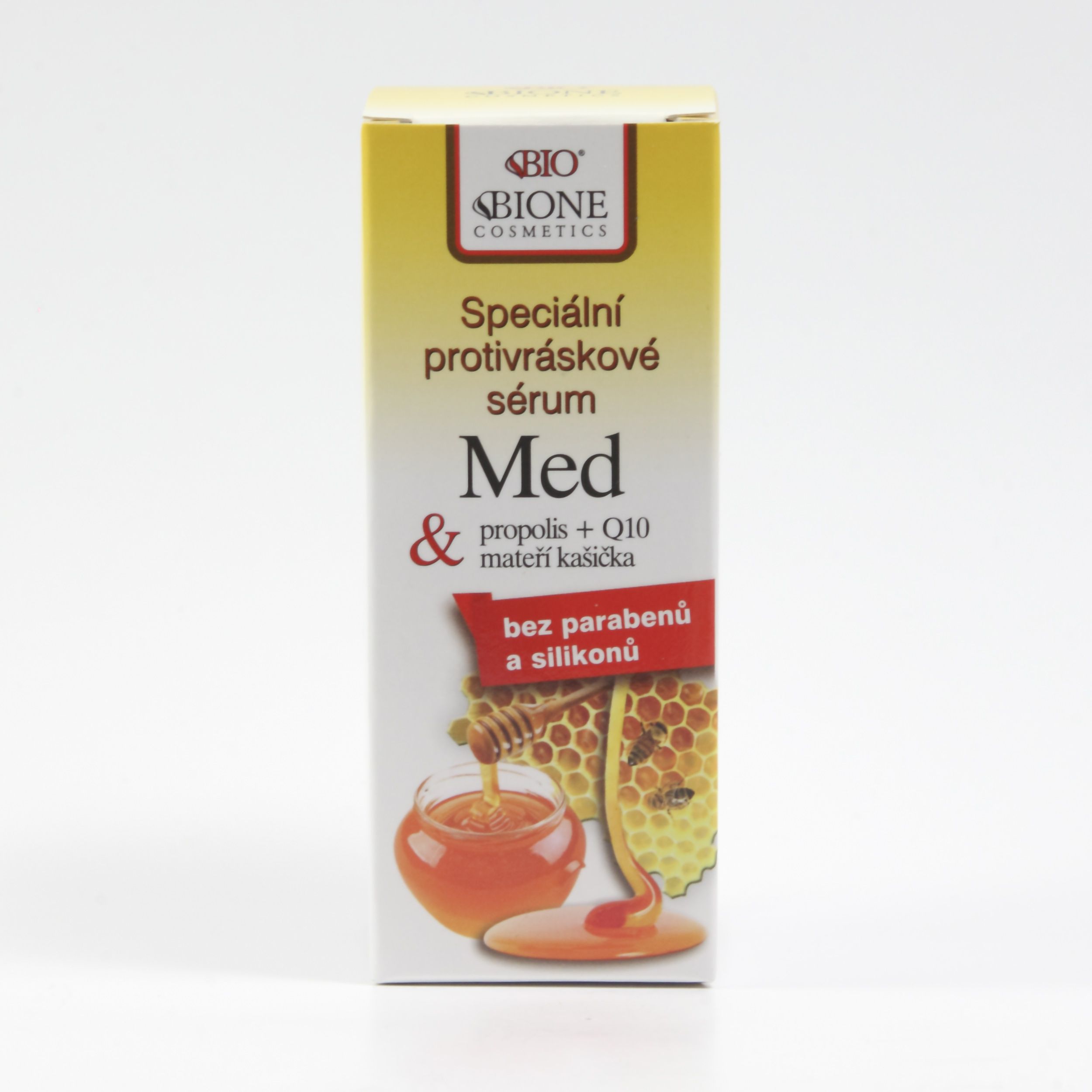 Složení: koenzym Q10 (0,1%), karnosin, lipoamin, med, propolis, nikotinamid, panthenol, glycerin, inositol, tokoferol, bambucké máslo, mateří kašička