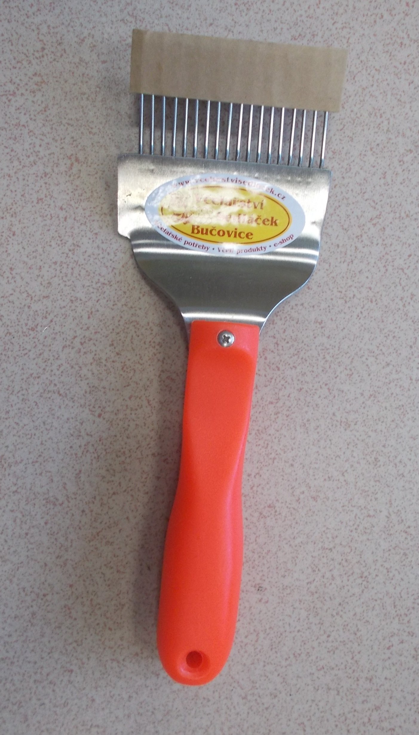 Nerezová vidlička s nožem (vhodný pro očištění rámků, sběr propolisu) Univerzální typ - 18 jehel, šíře záběru 72 mm . Tzv. menší vhodná pro děti a ženy.