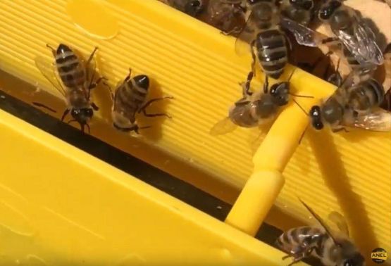 Vyrobeno z potravinářského plastu, nalévání prostřední částí krmítka, součástí jsou dva plováky aby se na nich včely zachytily.