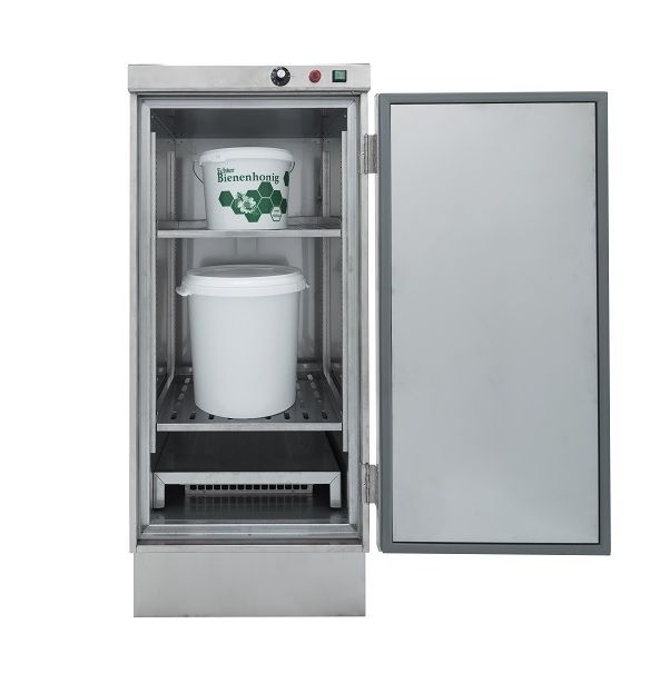 Nerezová termokomora, která slouží k zahřátí zkrystalizovaného medu, tím dojde k jeho ztekucení. Do termokomory se vejdou tři kyblíky medu o hmotnosti 15 kg nebo jeden 40kg + jeden 15 kg. Náš tip: kyblíky s medem doporučujeme nechat v komoře na cca 24 hodin při 45 °C.
